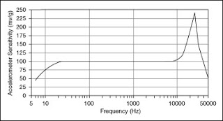 Grafik perbandingan frekuensi dengan sensitivitas sensor getaran :